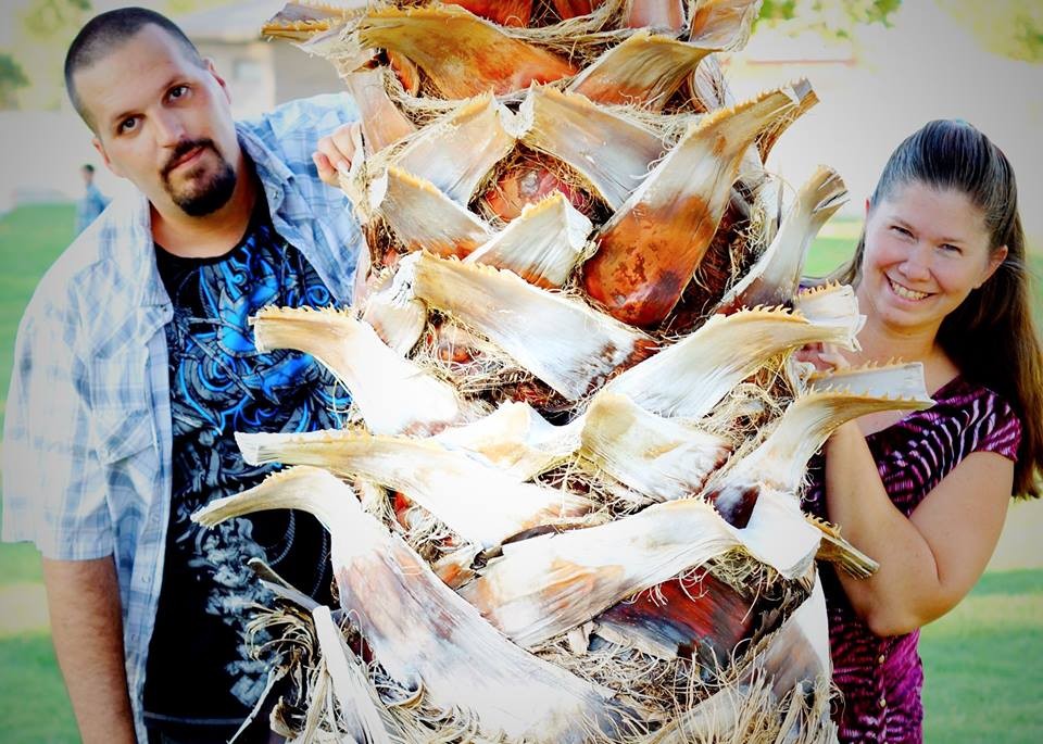 This was cute because this was during Nicoli’s time of saying, “ewwwww” to everything. He didn’t like the feel of grass, dirt, couldn’t have his food mix or he’d refuse to eat (still does this) Finally I will show a few shots that show the husband and myself goofing around a palm tree.