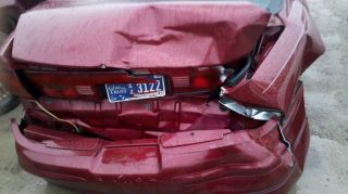 For those of you that already knew this is the results of the “fender bender” if you call it that. For those that did not know, my husband was coming home from talking with a car dealership to see if we could trade our beautiful car in for a mini van, this would be much better for our family of six then the car we had. On his way home there was a traffic jam, people were stopped including him when an F150 slammed into him from behind pushing him forward into another car. So the results of the accident.