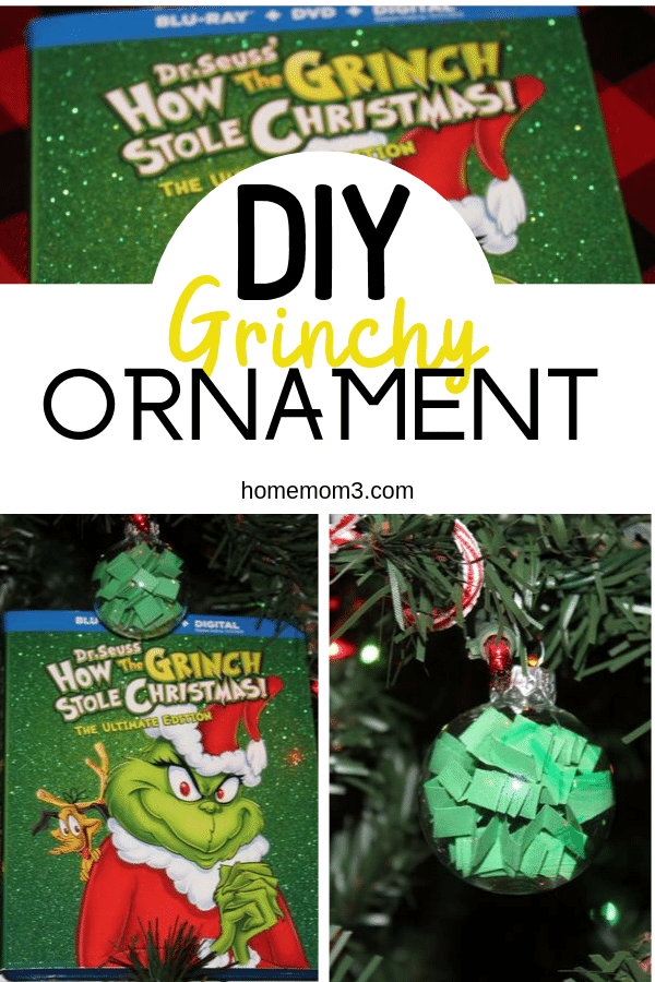 Grinch-inspired ornaments for your Christmas tree this year. They are really easy to make and the kids will love helping with it too! Make these while watching How the Grinch Stole Christmas on TV.