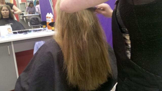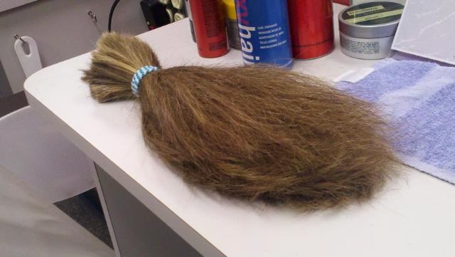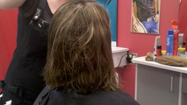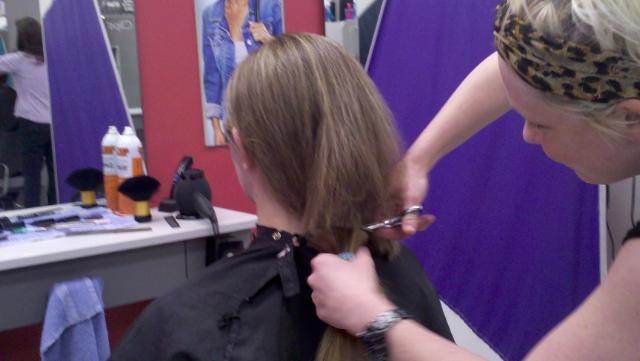 Instead of waiting any longer, I did something that no one thought I would do, or if they thought it they didn’t think I would cut my hair as short. I donated my long locks to Locks of Love. Truth is I have known plenty of people that have died of cancer. I also know one very amazing young woman that has battled Leukemia twice and went through chemotherapy and lost her hair. But to top it all off, late last year we got news that my own daughter my have a birthmark that contained cancer and we might have to go through it with her. This broke my heart in more ways than you can imagine, thankfully earlier this year she had the birthmark scraped from her head and they said it was benign. So together we agreed to donate our hair, I had always wanted to do it just never had but now I really wanted to do it.