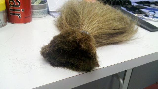 See the hair? Wouldn’t that give you headaches? Leave it down and it gets pulled on everything, if you put it up in a pony tail it begins to hurt your head. No win.