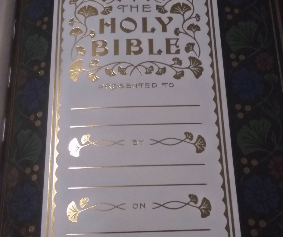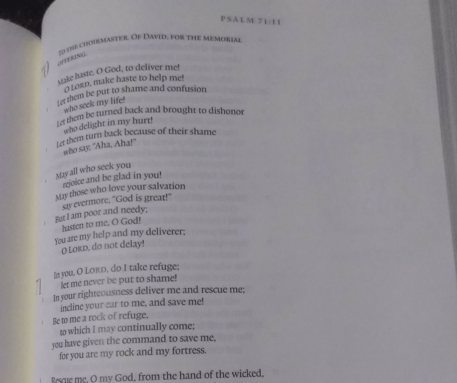 What’s the Illuminated Bible? I’m so glad you asked. This is a beautiful bible with gold trim on the pages. It features a 9 point type and two color printing on the pages. It has wide margins which makes taking notes so much easier.