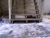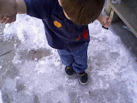 I decided we’d walk even further to cut across the highway where there actually is a crosswalk, I would’ve done it before but they don’t have one near this bank and it was quicker. So once back home Little A wanted to play out front a bit and chase some more birds. The ice is slowly melting away, salt is really high at the stores or not even out anymore, instead they have sand. Umm, yeah not with these kids they’d think it was a sandbox. lol. So I thought I’d be smart and pour hot water on the ice. I got some of it to crack and removed it but not all. Here’s some pics of today’s adventures.